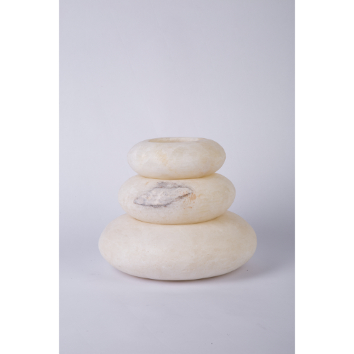 The Triple Tier Egyptian Alabaster Candle Holder Wholesale is a sculptural lighting accessory designed for professional interiors that value authenticity, material purity, and refined craftsmanship. Entirely handmade in Upper Egypt, this piece reflects Egypt’s long-standing tradition of stone carving, adapted to modern luxury spaces.