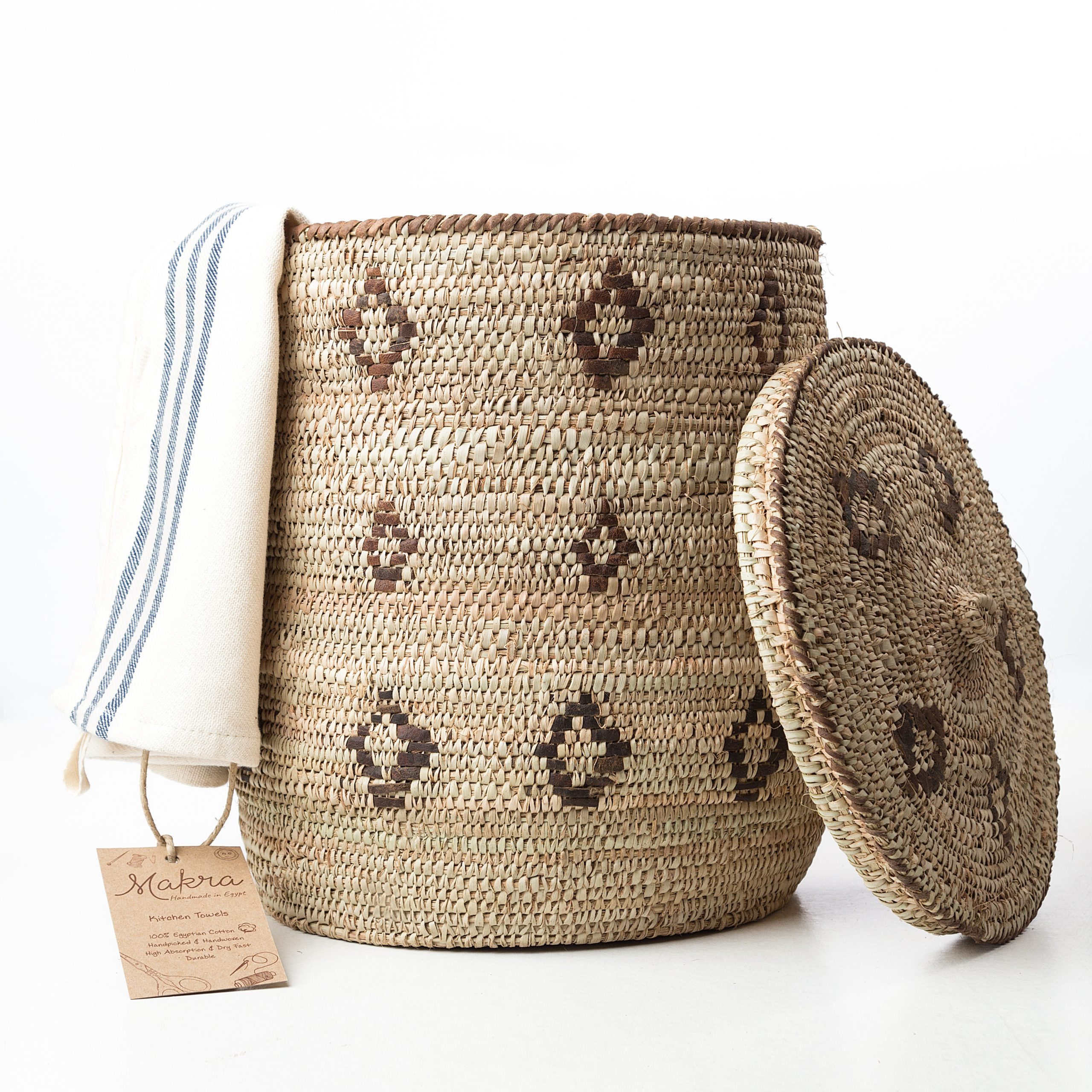 Each handmade Dom Palm wicker basket is handcrafted using traditional techniques, resulting in subtle natural variations that enhance its authenticity.