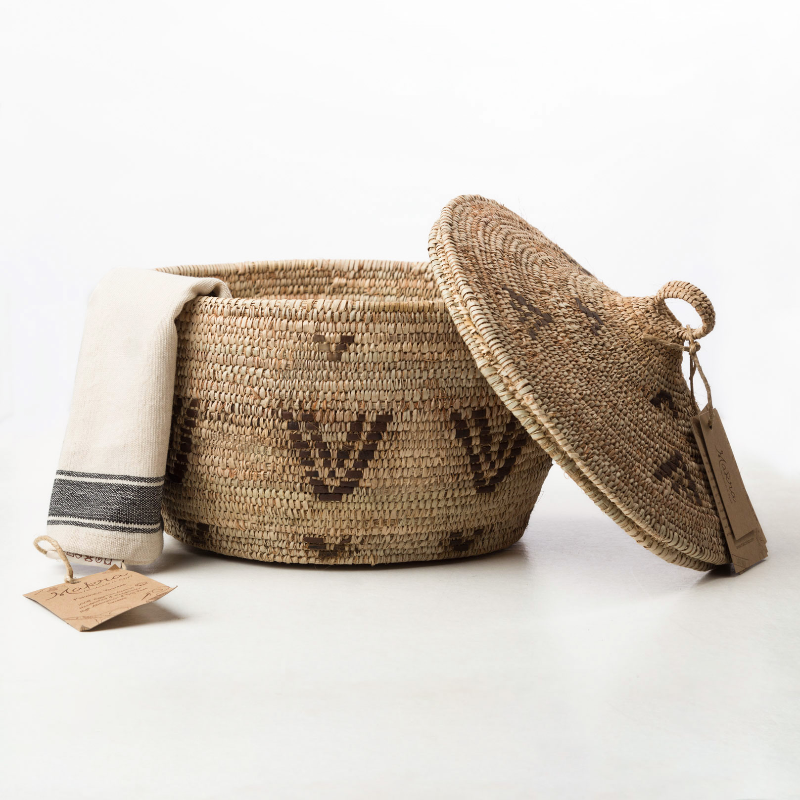 Handwoven from Dom Palm Tree fibers, this basket offers a level of strength and longevity that distinguishes it from standard wicker products.